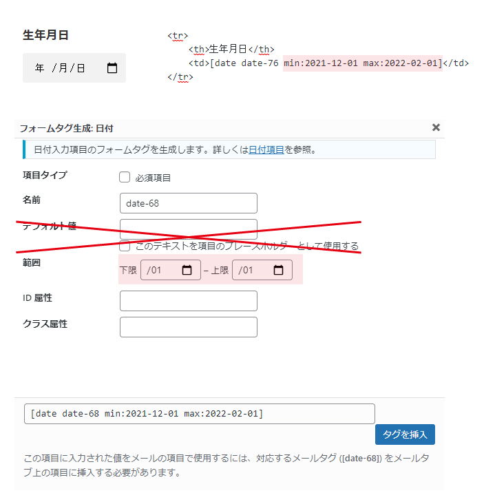 範囲を指定できるので、生年月日の場合はどこまでの範囲の年齢を入力してもらうのか想定しておくことが大切です。