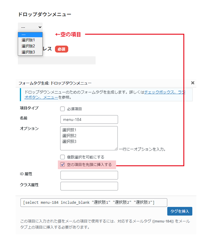 用意された選択肢から選べる「ドロップダウンメニュー」