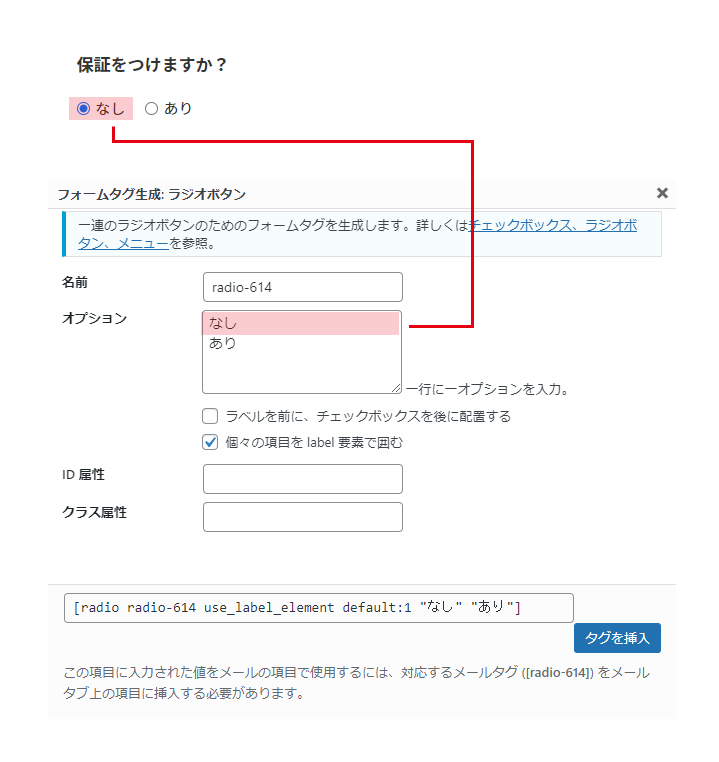 そして、必ずどちらか選択された状態になっているので、選択肢1つめ(1行目)は万が一選択漏れがあった場合でも問題ないような選択肢にしておきましょう。